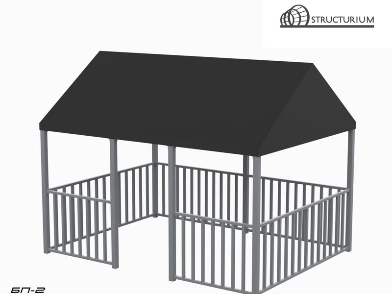 При производстве Беседки используется профильная труба 80*80*3мм, 40*40*2мм. Покраска полимерная порошковая с предварительным нанесением цинкосодержащего грунта, цвет серый. Покрытие крыши - акриловая ткань или ПВХ.